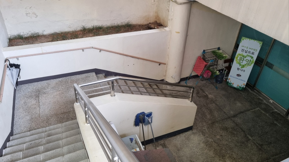 경남 창원시(마산)에 위치한 성당 지하교육회관 외부로 노출된 승강기 설치를 검토하고 있습니다.